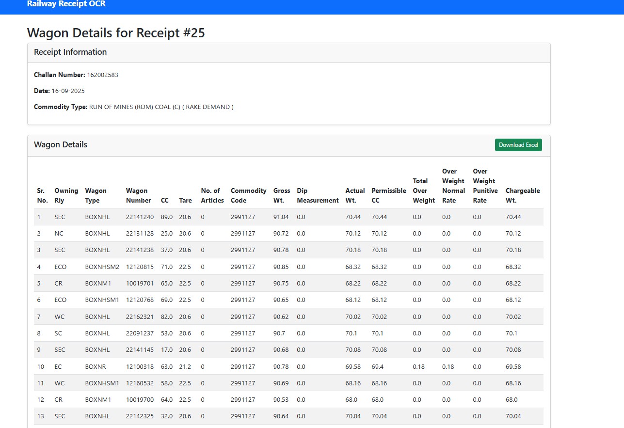 Multi-Page Data Integration: Seamless processing of wagon details across all pages