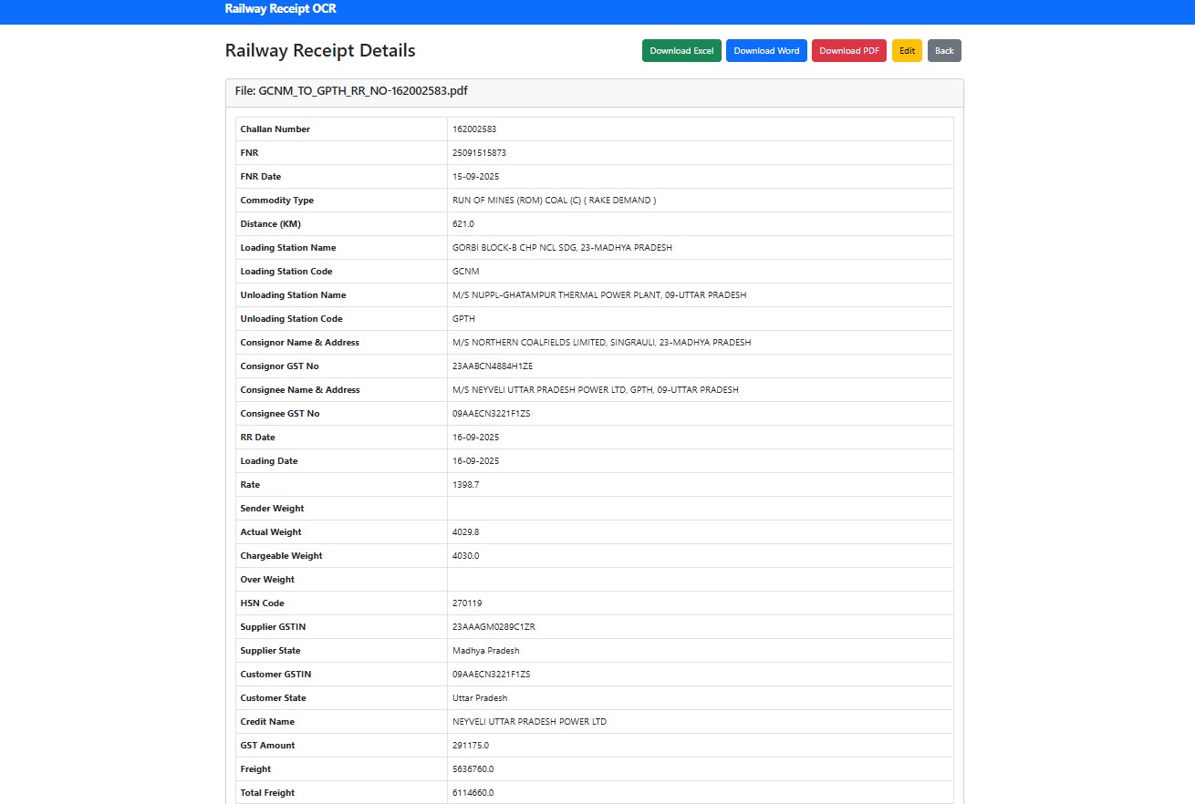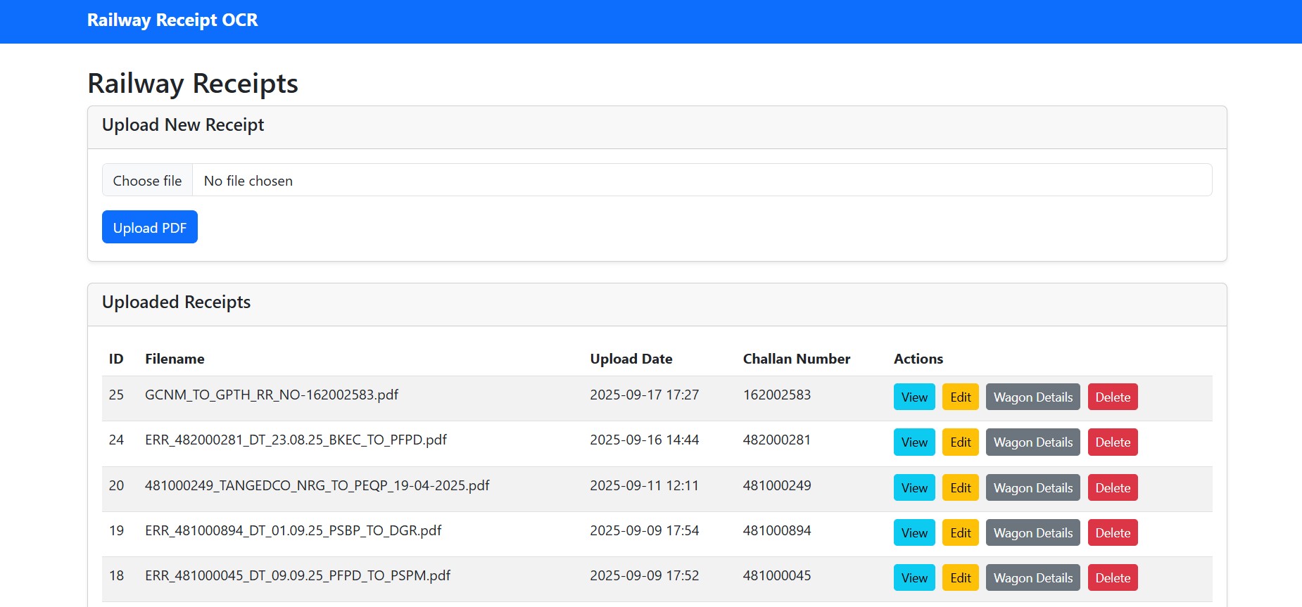 Indian railway freight operations generate millions of receipts annually, containing critical business information across multiple pages and complex formats. Traditional manual processing of these documents faces significant challenges: