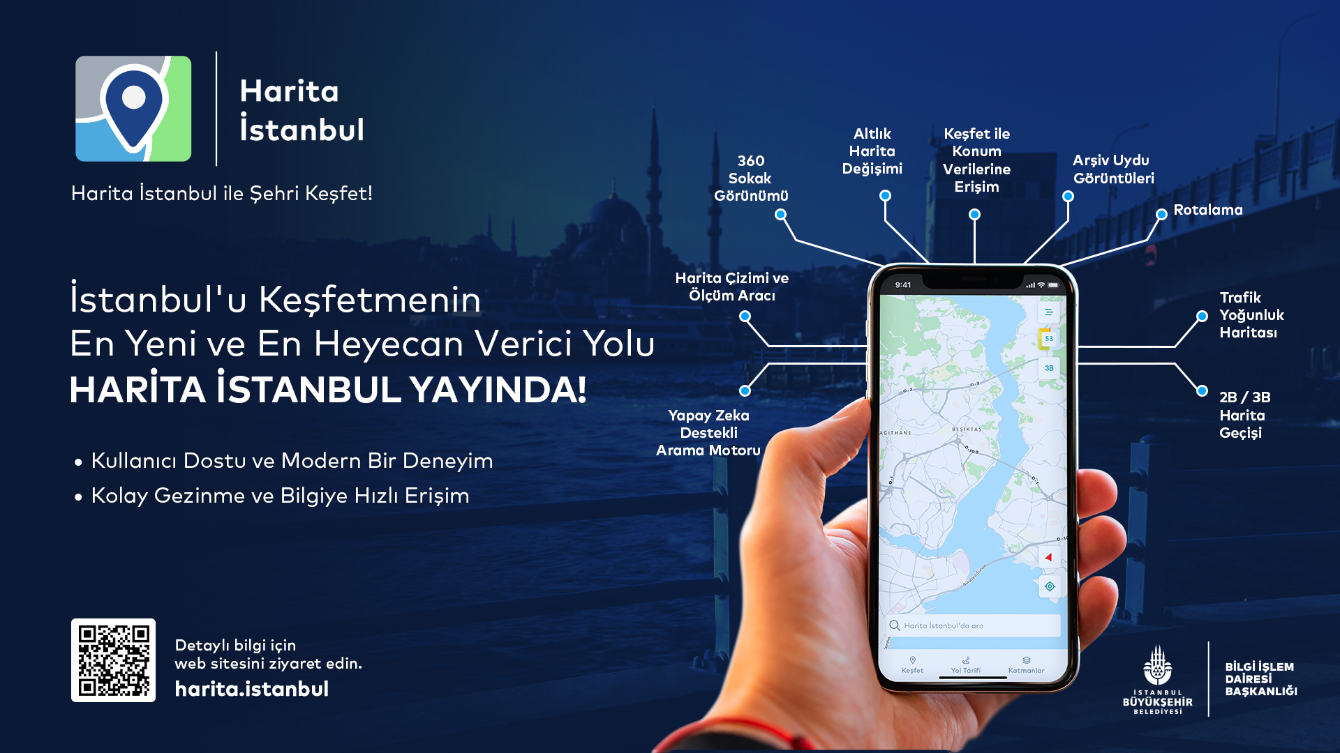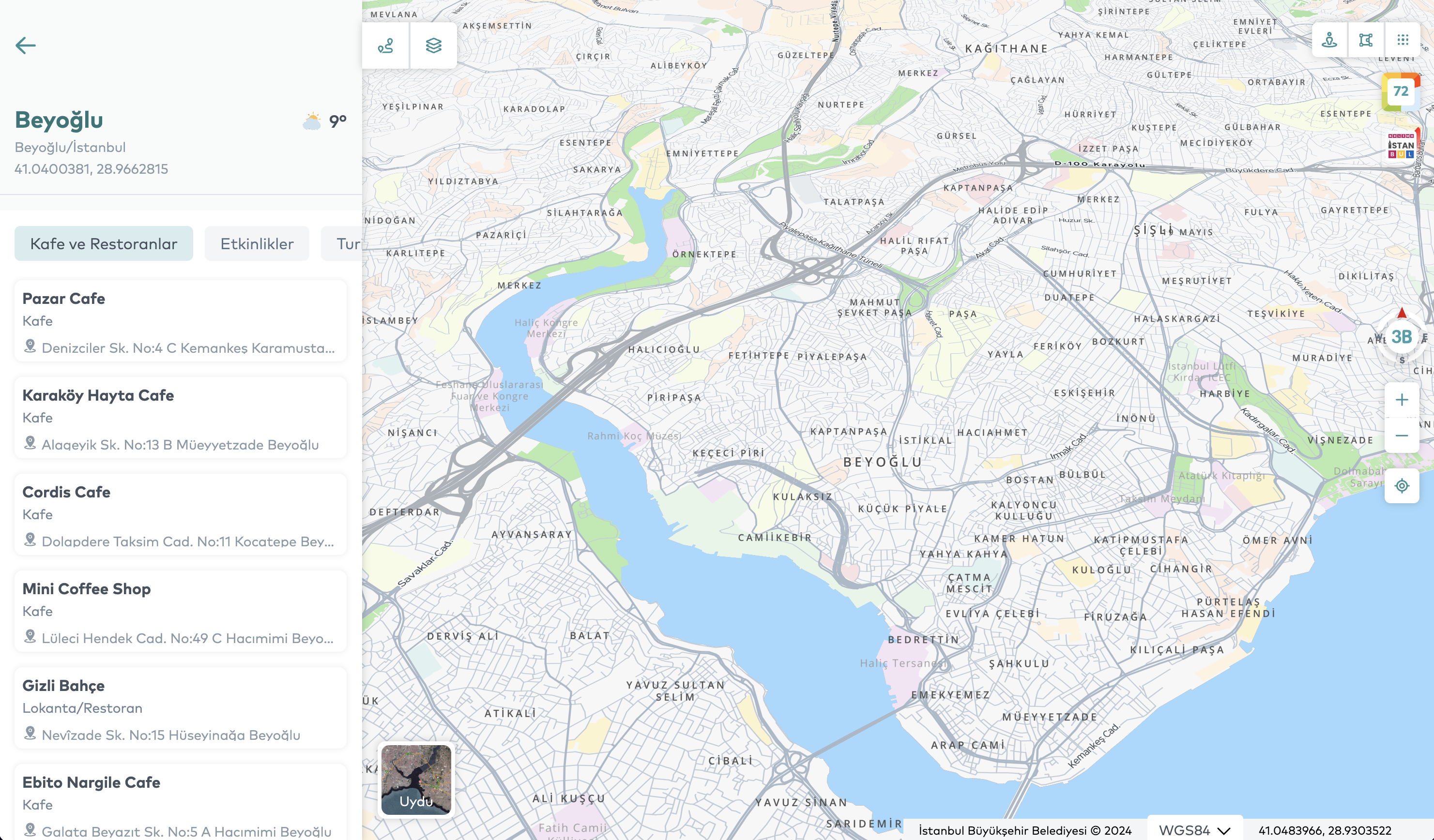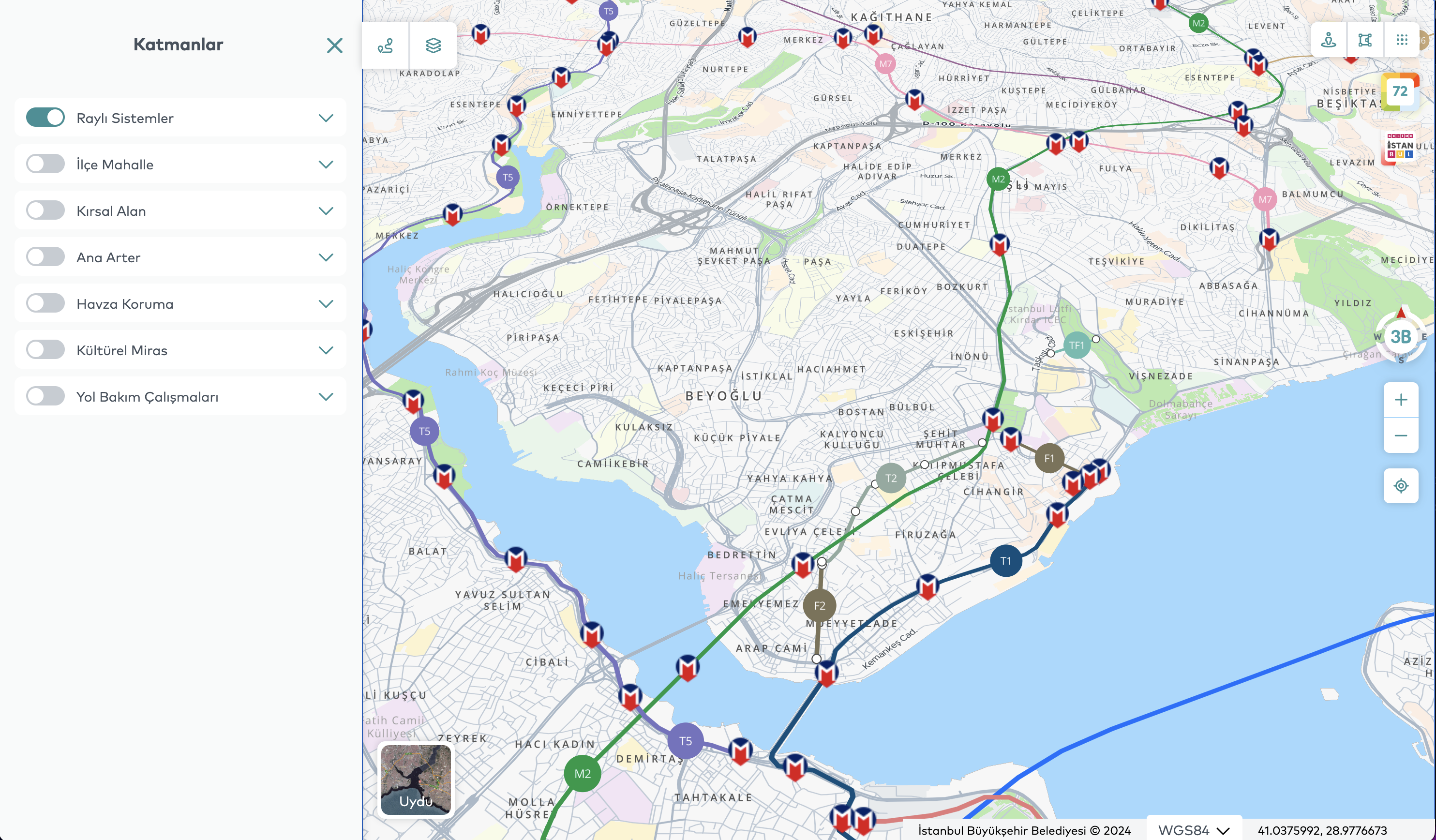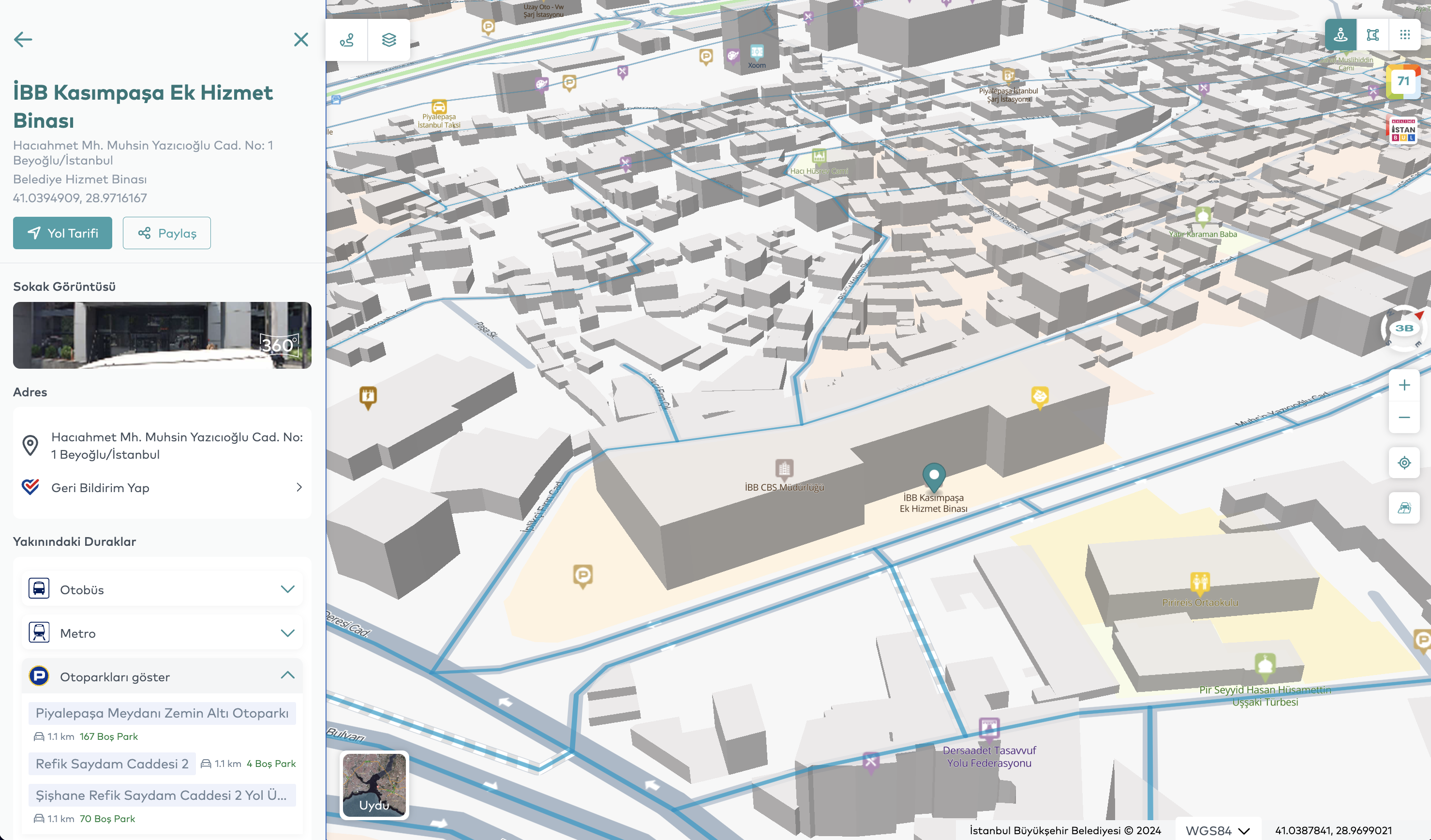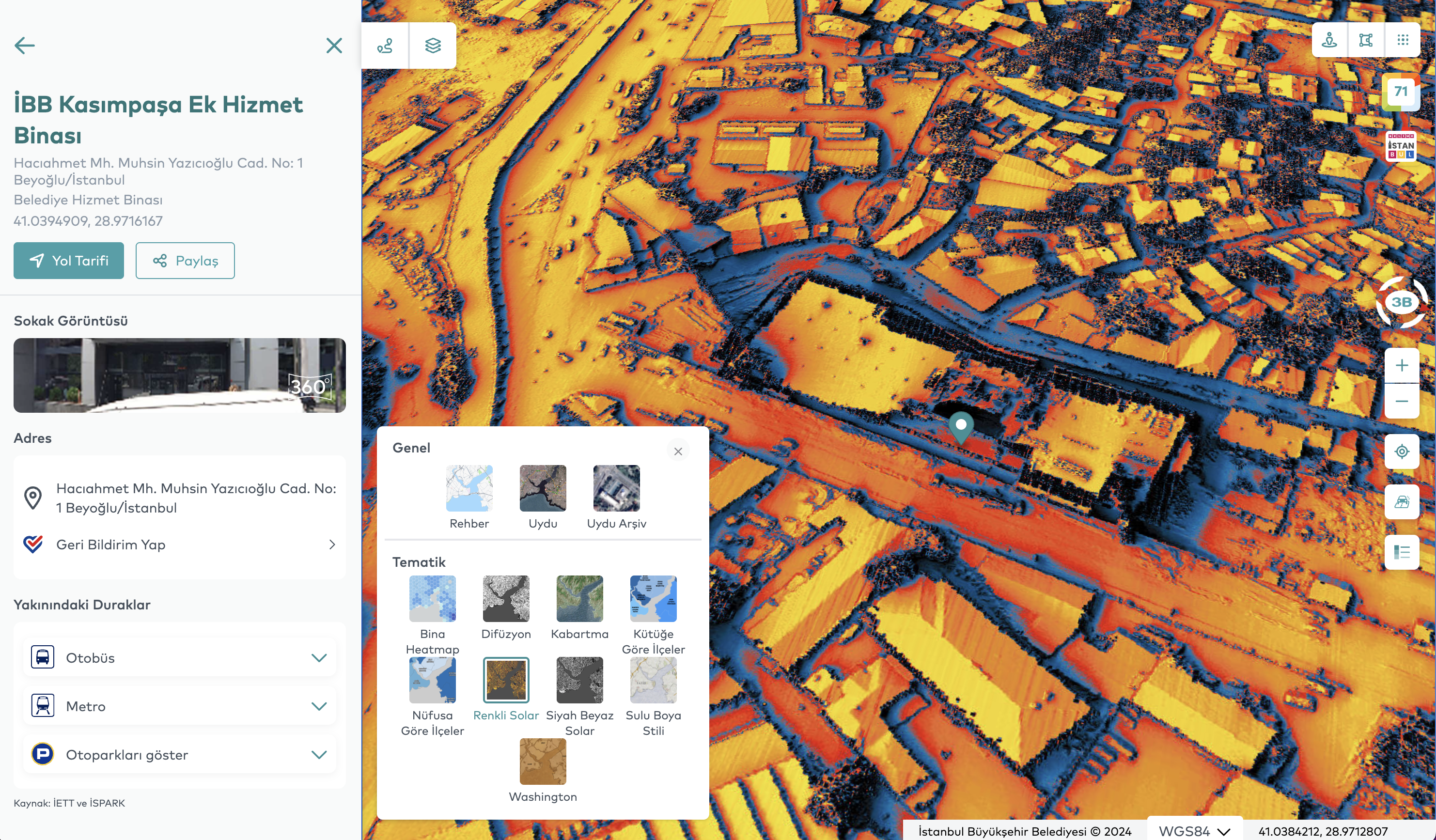 With its AI-powered infrastructure, the platform provides a comprehensive view of city data, serving as a powerful decision-support tool for both citizens and local administrators. Its data-driven analysis capabilities effectively support urban planning, city management, and strategic decision-making, positioning Map Istanbul as a key digital tool for local governments. For individual users, it acts as a daily life guide, while for institutional users, it offers a high-potential platform for modern urban governance. The application offers users fast and accurate location-based search through an AI-powered address search engine and a “search nearby” feature. Additionally, it supports efficient urban transportation planning by providing the ability to calculate routes for multiple points.The application also provides users with real-time information on traffic congestion and weather updates within the city, offering up-to-date data on urban mobility. This enables users to make informed travel decisions and, if necessary, choose alternative routes. Through 360° panoramic street views, users can explore various regions of Istanbul with both current and historical imagery. This feature serves as a valuable analytical tool for those wishing to examine the city’s physical transformation. Additionally, users can closely observe different spatial data of Istanbul via thematic maps and extensive data categories, and, with the timeline function, perform in-depth analyses of the city’s development process using historical satellite and aerial imagery.One of the core functions of the application is to enable users to measure distances and areas. This feature is particularly significant from a Geographic Information Systems (GIS) perspective, allowing highly accurate calculations for urban planning, construction, and real estate analysis.One of the most notable features of Map Istanbul is its 3D modeling of the city, which allows users to freely explore Istanbul in a highly realistic three-dimensional environment and experience the historic city along with its cultural heritage in an unforgettable way.In conclusion, Map Istanbul, accessible at https://harita.istanbul/ and https://map.istanbul/ is a powerful platform that integrates all data related to Istanbul, supported by artificial intelligence and a citizen-centered service approach. In addition to serving as a crucial tool for local governments, it holds significant potential as an application that facilitates residents’ daily lives and accelerates data-driven decision-making processes.